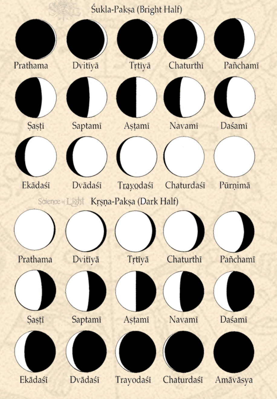 - Krishna Paksha – the waning phase of the Moon (when the Moon is shrinking)