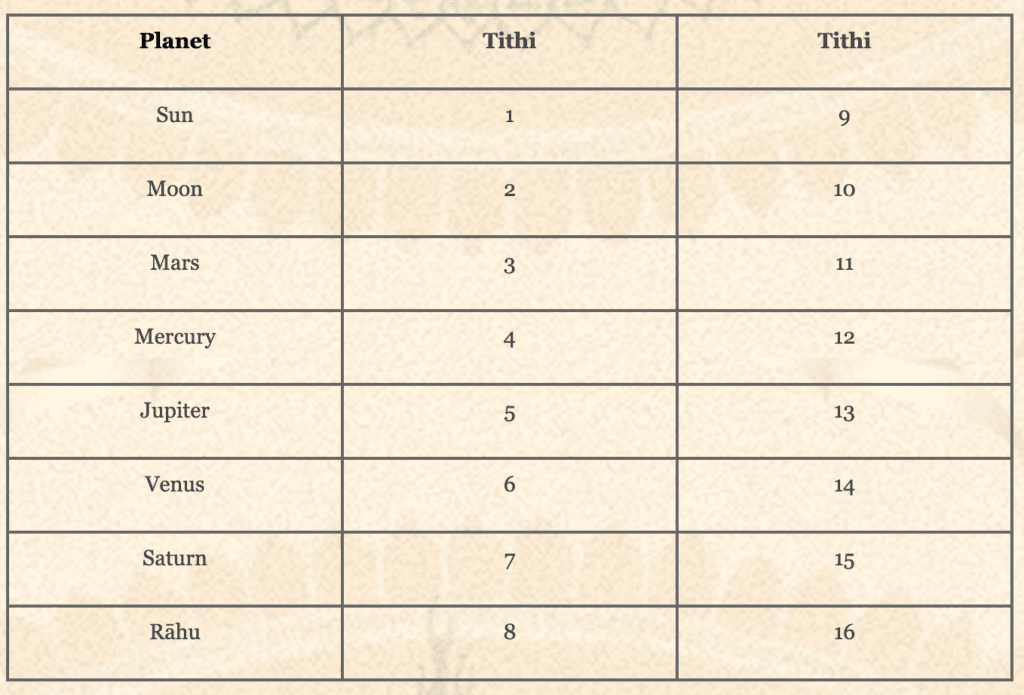 Each Tithi also has a deity. These deities give more meaning and can help decide what rituals or prayers to do.